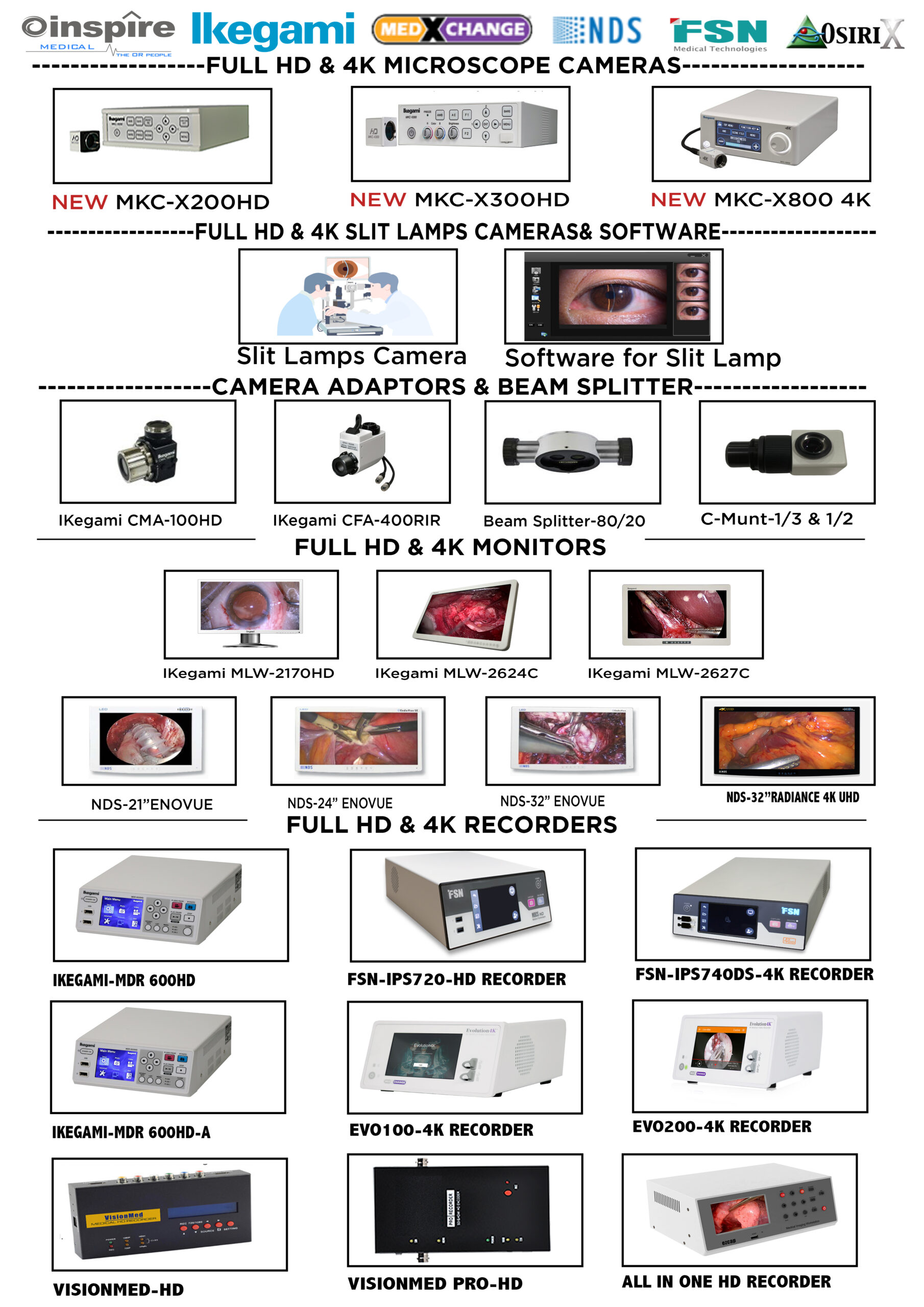 We are distributors and technology partners for leading global manufacturers such as Ikegami, MedXchange, FSN, NDS, OsiriX, and Apple, and also act as OEM partners for renowned microscope, laparoscopic, and endoscopic companies including Carl Zeiss, Alcon, Topcon, Haag-Streit, Leica, Takagi, and others, as well as Olympus, KARL STORZ, Medtronic, Stryker, Richard Wolf, Fujifilm, B. Braun, Smith & Nephew, Mindray, and others, fulfilling their surgical recording needs.
